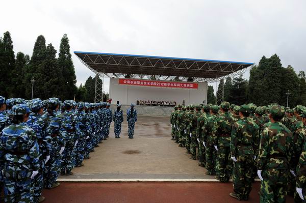 5月25日上午10:00,我院2012级军训汇报表演暨总结表彰大会在昆明民族干部学院阅兵场隆重举行。