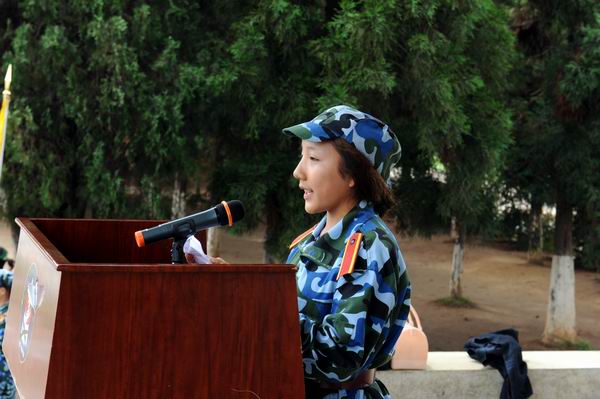 大会在雄壮的国歌声中拉开帷幕。在雄壮的中国人民解放军进行曲中全体起立迎校旗,阅兵式正式开始。崔书记在司马政委的陪同下,依次检阅了全体参训学生方队。崔书记高声问候:“同学们好,同学们辛苦了!”同学们铿锵响亮应答:“努力学习,为校争光!”一声声口号响彻云霄!