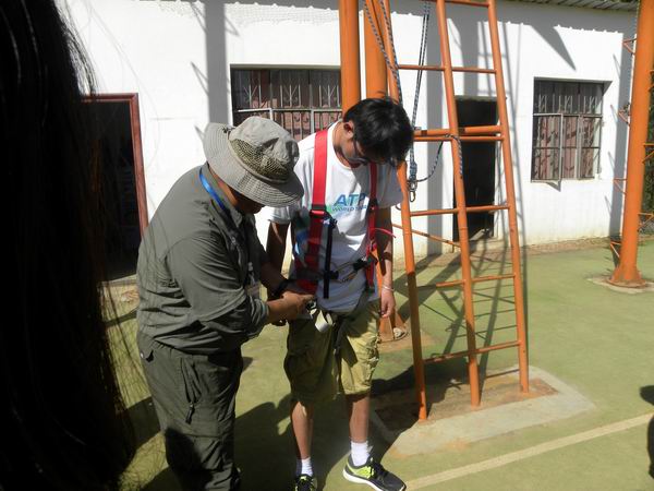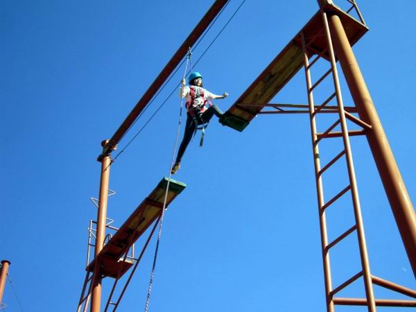 这次的训练分组进行,一共进行了“桃花朵朵开”、“老虎猎人抢”、“挑战60秒”、“高空断桥”、“高空平衡木”、“有轨电车”等6个项目的训练。每个项目大家都积极参与、发挥所长、勇敢挑战。看似简单的小游戏却给大家留下了深刻的印象和启示;每个游戏结束后教练员都会跟进交流,从中学到了很多道理。在此次活动中,同学们的团队协作精神得到了充分的锻炼,凝聚力得到了提高,更加懂得了队友彼此间的重要性;通过磨合,增添了友谊与默契,展示出了新时代大学生的蓬勃朝气和竞技热情。