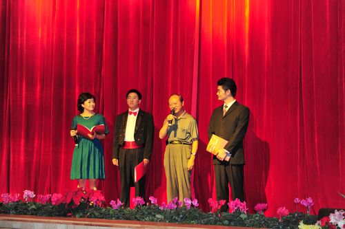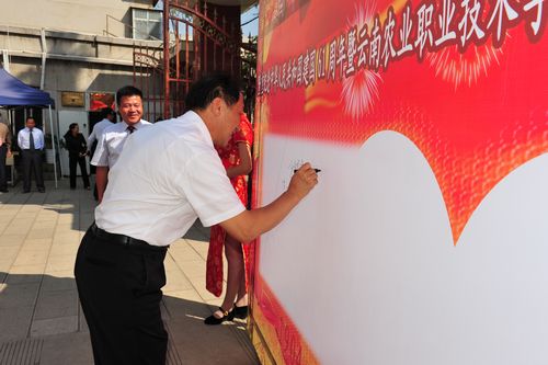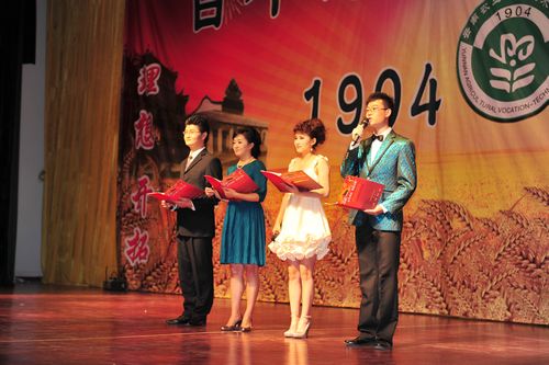 学院党委书记崔金赋同志代表学院致辞隆重庆祝学院成立106周年,欢迎农业厅厅长张玉明、副厅长孙海清及省委宣传部、省政府、省教育厅、临沧师专、丽江师专等部门和单位的领导和嘉宾,新闻界的朋友莅临学院指导!孙海清副厅长代表省农业厅致辞表示祝贺;学院老领导、原云南省农业学校校长李铸声为演出题词并发表热情洋溢的讲话;学院93岁的老教师孙奎钺;学院校友、全国优秀宣传干部郑垧靖同志的妻子杨翠芝;红河州农业局等单位纷纷发来贺信,祝贺学院建校106周年!