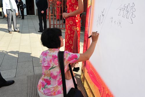 张厅长在三个节日庆典留言板上签字