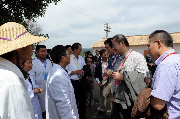 专家组一行沿花庄河上农牧场实训基地,先后察看了园林园艺学院的园林实训基地育苗场、果树实训基地、蔬菜实训基地、园艺花卉实训基地;察看了畜牧兽医学院的草地牲畜养殖基地、兔、鸡实训基地、水禽实训基地、兽医疾病检测防疫中心、生猪宰杀点、滇陆猪扩繁场;考察了农学院的中草药实训基地、油菜育种基地、玉米育种基地、水产养殖基地等。