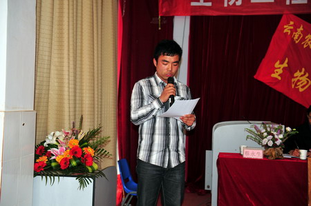 党委书记崔金赋同志代表学院党委向大会热烈祝贺并致辞,崔书记要求各位学生、团员干部一定要珍惜在大学服务学生、团员工作的机会,履好职、带好头,不断磨砺和提高自己,努力为学院服务,为同学服务。希望生物工程系的同学三年大学越来越好,希望生物工程系越办越好!