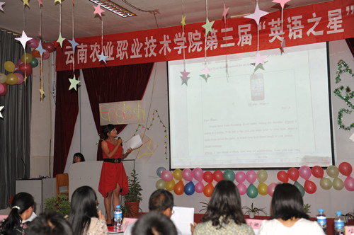 6月7日晚上7:00,学院第三届“英语之星”口语大赛在小哨校区多媒体教室三举行。基础部主任董玉洲、副主任李憬出席了比赛。本次比赛由基础部主办,院学生会学习部承办,旨在营造校园英语学习的良好氛围,展现和提高我院学生英语口语表达水平,并为第九届全国高职高专实用英语口语大赛云南赛区复赛选拔优秀人才。