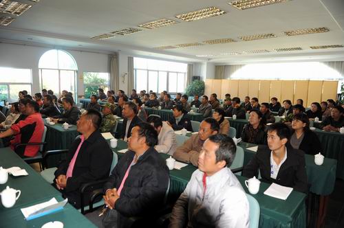 崔书记在开班仪式致辞上,他首先感谢富民县政府的大力支持,感谢各位领导和学员牺牲周末时间前来参加培训!崔书记向学员介绍了我院悠久而光辉的办学历史,特别是“云南蚕桑学堂”创办那段“首开云南职教先河”不平凡的经历和对云南教育的特别意义;介绍了现阶段我院的办学规模、人才培养、办学特色,以及示范性高职高专院校建设的发展状况;特别介绍了我院这几年积极参与省政府、省农业厅建设、服务“三农”的工作,我院在农民劳动力转移培训、农民创业培训、农民科技培训等全日制大专学生培养以外的多种智力培训中所取得的成绩。同时,学院积极响应省委省政府的号召,努力在高原特色农业创建,打造高原粮仓中作出我们应有的贡献!目前,我院在迪庆州、怒江州、大理州、丽江市等地积极开展玉米、水稻、土豆等项目的高原粮食高产创建工作。
