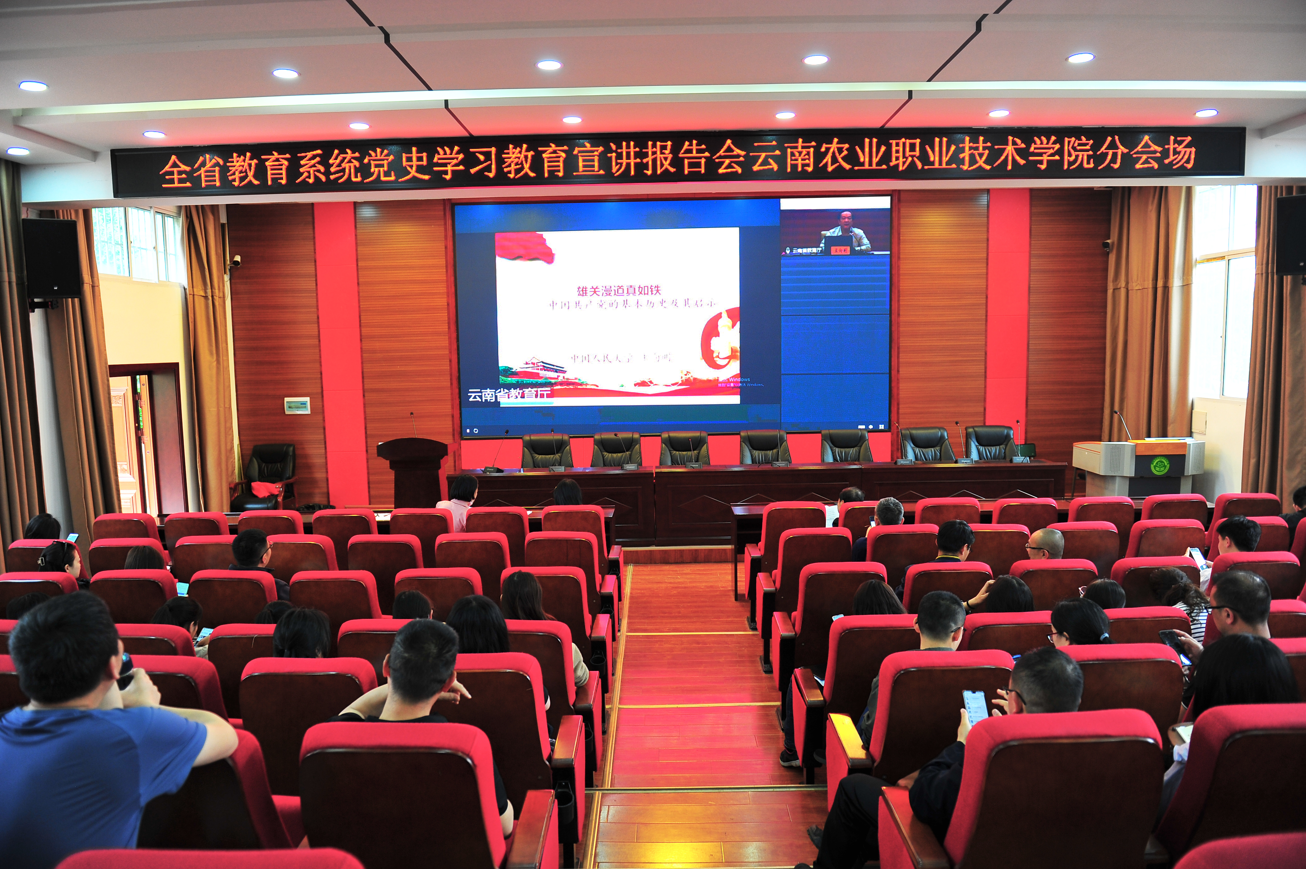 通知中心5月7日下午,我省教育系统党史学习教育宣讲报告会以视频会形式在昆明举行,我院在小哨校区嘉锐楼报告厅设置分会场,学院领导、党委委员、党史学习教育领导小组成员、各党总支书记、相关职能部门负责人、思政课教师和辅导员约60人聆听了宣讲报告会。