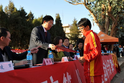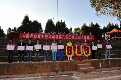之后,本届运动会裁判长董玉洲宣布了运动员个人比赛成绩;俞浩副院长宣布了运动会集体获奖名次。就坐在主席台的领导为获奖的集体和运动员代表颁发了锦旗、奖状。