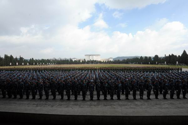 最后,崔金赋书记为本次新生军训作了总结讲话。崔书记说,历时两周的2013级学生军训工作今天胜利结束了,我代表学院党委向承担本次军训任务的中国人民解放军昆明民族干部培训学院领导和官兵致以崇高的敬意!向参与组织这次军训的学院各部门、各系领导、辅导员和带队老师表示亲切的慰问!向胜利完成各项军训任务的2013级全体同学表示热烈的祝贺!崔书记指出,在紧张艰苦的军训中,同学们经受了一次严峻的考验,也获得了终生受益的精神财富。通过军训,同学们学习了军事知识,掌握了一定的军事技能,增强了国防意识,磨练了意志,增强了体质;懂得了如何面对困难,克服困难,如何用坚韧不拔的意志来支配自己的行动,并朝着既定目标不懈努力。我们欣喜地看到:军训期间,同学们不怕苦、不怕累,迈着矫健的步伐,喊着响亮的口号,唱着嘹亮的军歌,认真练好每一个动作,掌握每一个要领,克服一道道难关,真正把这次军训当作是磨练意志、锻炼身体、提升素质的好机会,充分展现了当代大学生的良好形象和精神风貌。刚才的会操,同学们精神振奋、步伐整齐、动作有力,表明本次军训达到了预期效果。军训将伴随着同学们以后的学习、工作和生活,终生受益。崔书记要求同学们,军训虽然就要结束了,但同学们不能把它当作一个终结,而应该当作一个新的起点,要继续发扬军训中养成的优良作风和艰苦奋斗、吃苦耐劳的革命精神,刻苦学习,以优异的成绩和实际行动巩固和发展军训成果。崔书记强调在今后的学习、生活中,同学们要时时处处按照军训期间的标准来严格要求自己,大力弘扬“耕道、养德、理想、开拓”的校训精神,刻苦学习政治理论和科学文化知识,不断完善知识结构,提高自己的综合素养,尤其要注重实践能力和创新精神的培养,争做中国特色社会主义事业的合格建设者和可靠接班人。