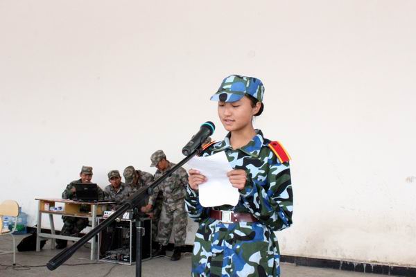 表演结束后,何明东副院长宣读军训优秀学生名单。对军训成绩优秀、表现突出的学员予以表彰;学院领导为优秀学员颁发了荣誉证书。随后,园艺与园林工程系工程监理班鲁严娇同学代表全体参训学生发言。李永忠院长代表学院向昆明民族干部学院一大队赠送了题为“威震河岳,武铸军魂”的锦旗,表达了我院师生对昆明民族干部学院一大队全体官兵的崇高敬意和衷心的感谢。紧接着,昆明民族干部学院军训教研室主任朱平同志讲话。