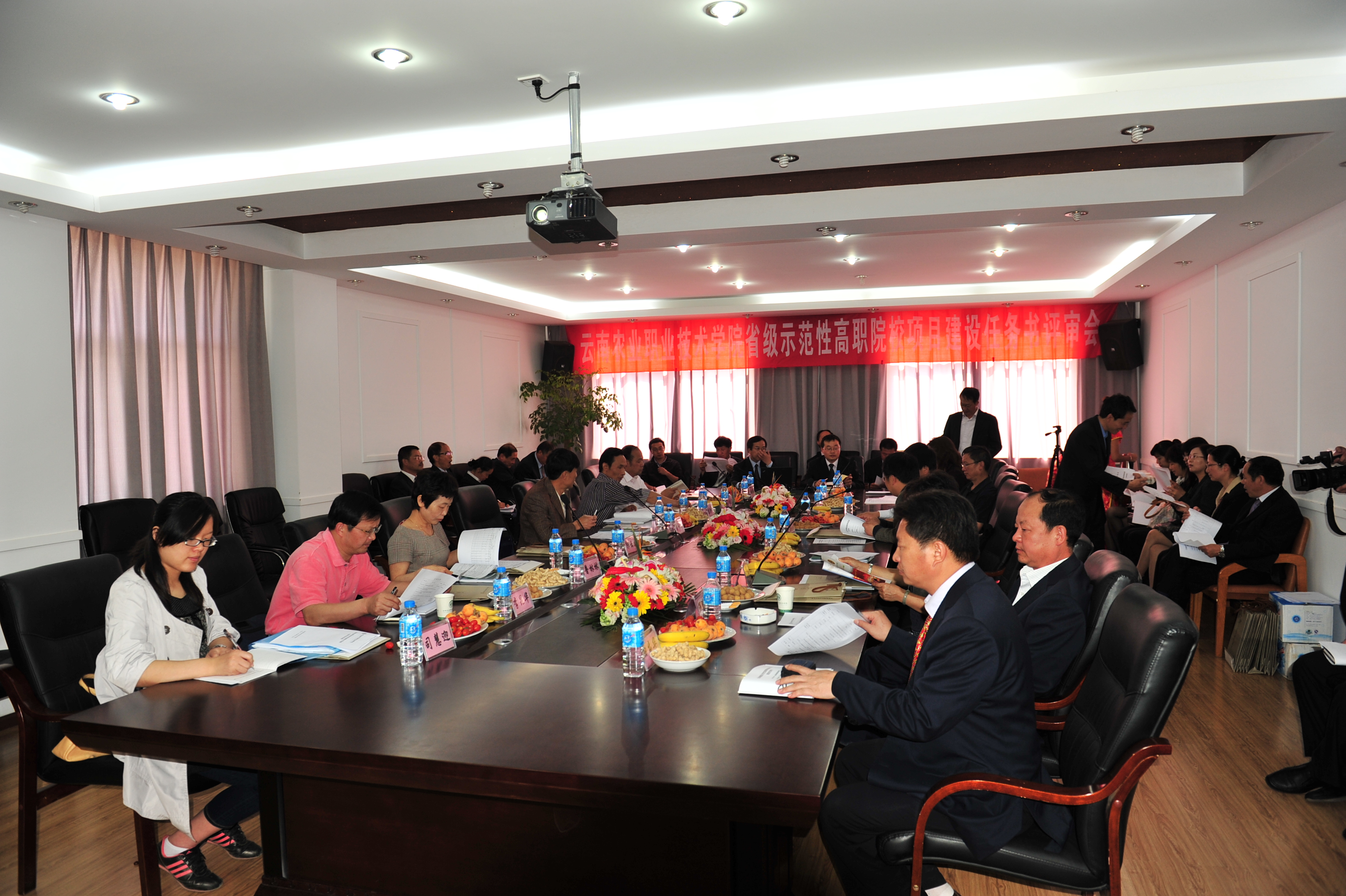 出席评审会的有省农业厅孙海清副厅长、农业厅科教处毕虹处长,学院党委书记崔金赋、院长彭志远、党委副书记赵刚、副院长何明东、副院长赵莉、副院长俞浩,以及学院院长助理、各部门中层主要负责人,教育厅专家组吴伯志组长(云南农业大学副校长、教授)、专家组成员雷新刚教授、陆建生教授、普林林教授、李昆华教授、教育厅高教处郭云龙副处长等。