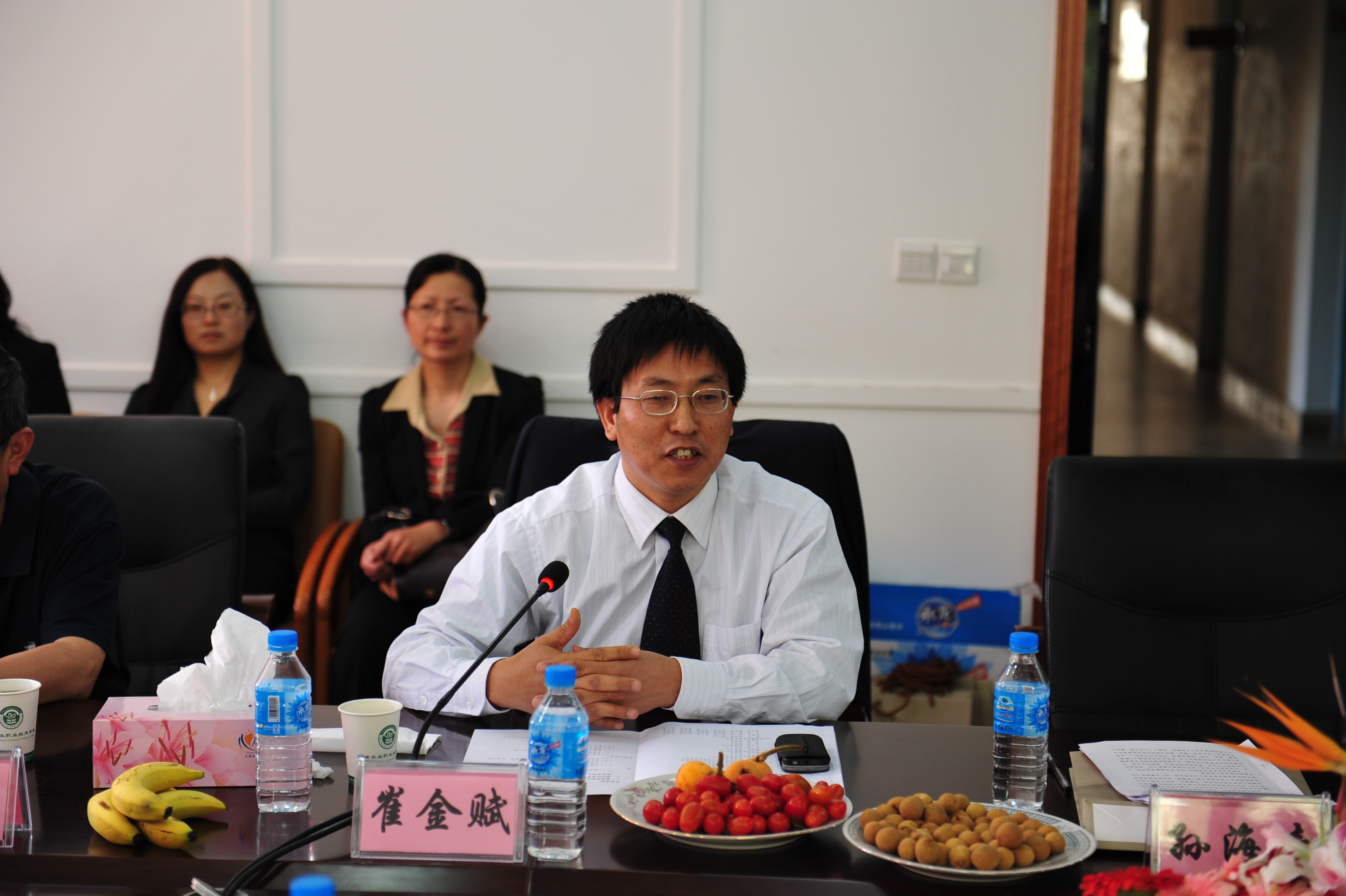 在评审会专家组听取汇报之前,学院党委书记崔金赋同志代表学院向专家组一行发表了热情洋溢而简短的欢迎词;农业厅孙海清副厅长代表农业厅党组向评审专家组表示,感谢各位专家对学院发展的关心和大力支持,农业厅对学院示范性高职高专院校建设非常关心,代表农业厅张厅长出席今天的评审会;孙副厅长强调农业厅对学院的发展将更有针对性,会更具体的研究对策,对学院的重视不是口头上的,而是在政策上予以倾斜,几年来通过各种项目支持学院几百万!感谢各位专家的辛苦指导和检查!