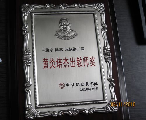 我院王孟宇教授获得第二届“黄炎培杰出教师奖”
