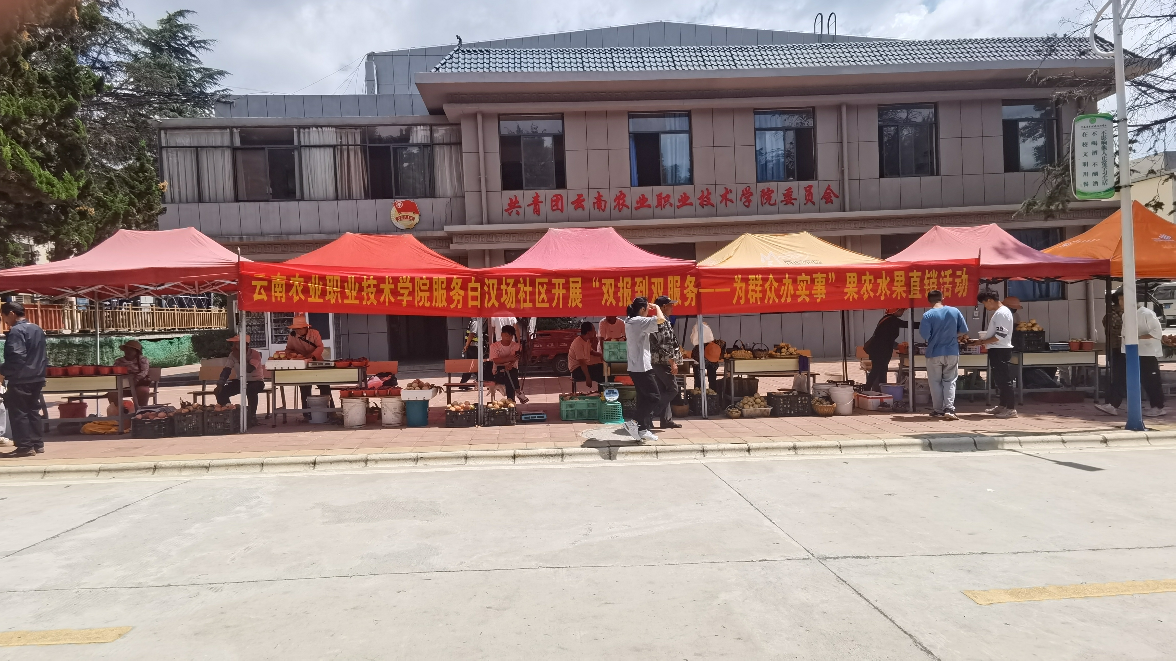 为解决白汉场社区居民因疫情期间水果滞销的问题,学院党委联合白汉场社区党总支部开展果农水果直销活动,在党史学习教育中扎实开展“为群众办实事”活动。经学院有关部门严格审核把关,共有25户果农进校销售水果,共销售水果约2000公斤,销售金额约1.1万元。此次活动,既为广大师生提供便利,又为果农实现了增收,此项活动计划每周五下午持续开展。