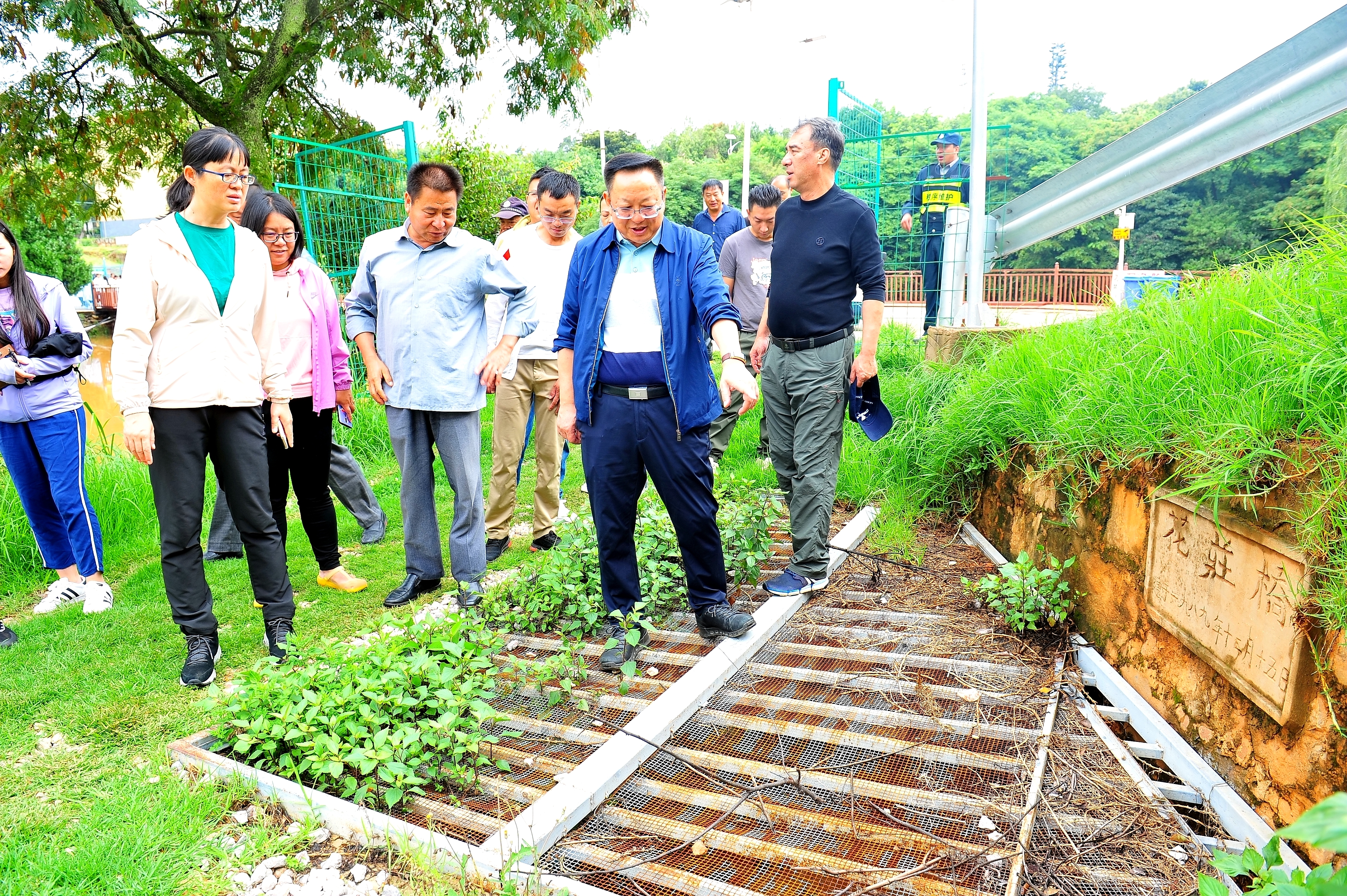 查看水产实训基地泄洪口