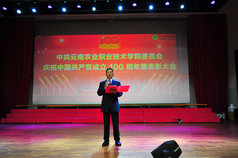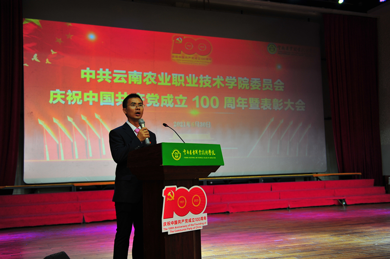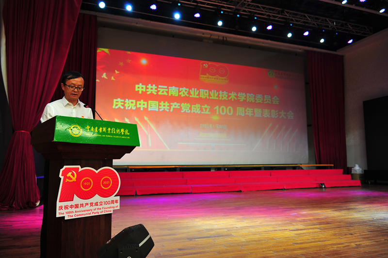 会上,党委书记崔金赋同志代表学院党委向获 “光荣在党50年”纪念章的老党员、受到表彰和获奖者的师生们表示热烈祝贺。并带领师生共同回顾党的百年奋斗历程,回顾sunbet集团中国官网入口在党的领导下不断发展进步的办学历程。他指出,本次会议既是一次表彰先进、鼓舞斗志的动员会,也是一次明确方向、再创佳绩的誓师会。学院今天所取得的办学成就,离不开中国共产党的正确领导,此次受到表彰的优秀个人和先进基层党组织,是我院师生践行不忘初心、牢记使命要求,充分发挥发挥先锋模范作用的优秀代表,全院党员干部和广大师生要牢记习近平总书记“以立德树人为根本,以强农兴农为己任”的殷殷嘱托,深入学习老党员们和本次受到表彰的优秀个人和基层党组织的宝贵精神,不断从百年党史中汲取奋进智慧、从榜样身上汲取党性力量,不忘初心、牢记使命,团结拼搏、接续奋斗,勇挑重担,再立新功,共同谱写学校“十四五”发展新篇章。一要学先进、争先进,大力弘扬先进人物精神。学院各部门和广大党员干部要以此次表彰为契机,扎实推进党史学习教育效果,汲取干事创业的强大精神动力,努力打造“有爱心、有灵魂、有血性、有本领”的四有团队。二要抓基层、强基础,切实打造一流党支部。各基层党支部进一步强化责任担当,按照“能力过硬、发展过硬、服务过硬、作风过硬”的要求,把支部建设好,把作用发挥好,持续增强基层党支部的战斗堡垒作用;要教育引导党员干部时刻牢记自己的第一身份共产党员,第一职责是为党工作,切实发挥党员先锋模范作用。三要抓团结、强效果,最大限度凝聚发展合力。学院各项工作都到了攻坚克难的关键时期,各部门要进一步强化团结协作,勇于克服困难,勇于解决问题,真抓实干,最大限度凝聚科学发展,加快发展的强大合力。