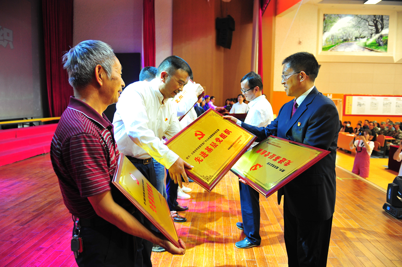 为获得“优秀党务工作者”称号党员代表颁发证书