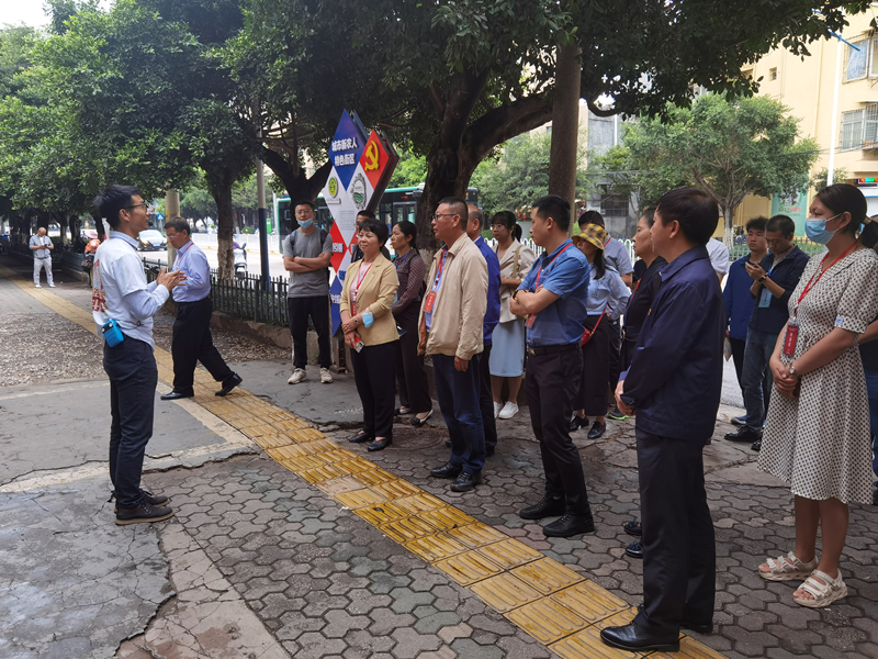 调研工作分为两个阶段,在第一阶段中,调研组一行在产教联盟的带领讲解下通过实地走访的方式调研了我院产教联盟打造的少数民族产品孵化平台、少数民族文化设计中心、少数民族人才孵化平台等。在第二阶段中,验收组一行在产教联盟大厅听取了产教联盟负责人从党建引领民族团结、如何通过职教助力铸牢中华民族共同体意识,如何在乡村振兴的大旗下推动各民族共同团结奋斗的具体做法等三个方面介绍了我院产教联盟在推动五华区民族团结创建所做的工作。
