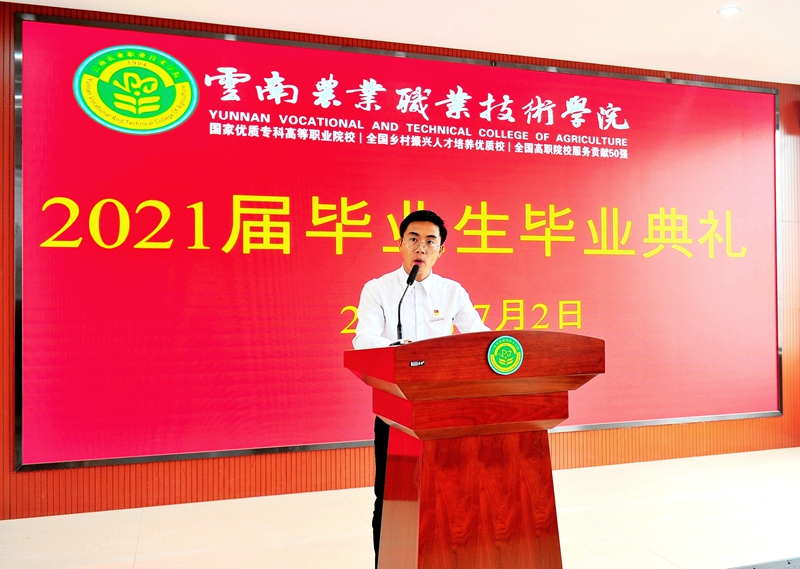 大会上,经管学院曾劼老师代表全体毕业班班主任作了发言,2018级园艺技术三班陶永江同学代表毕业生做了发言。