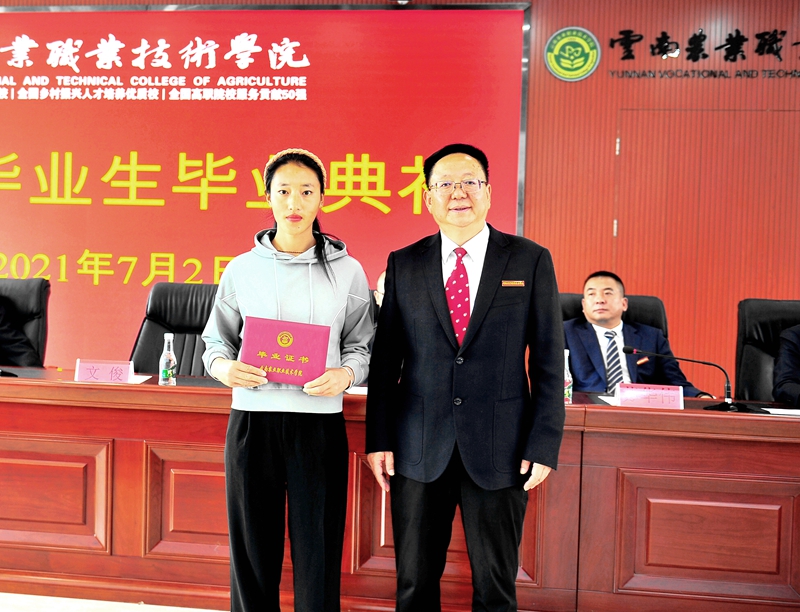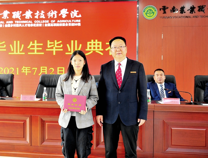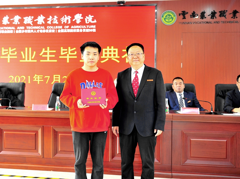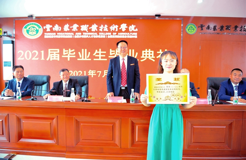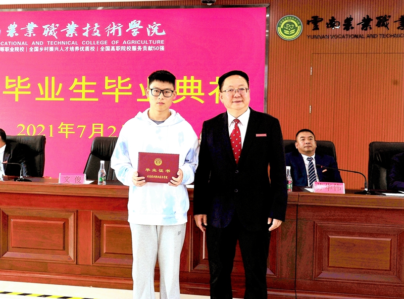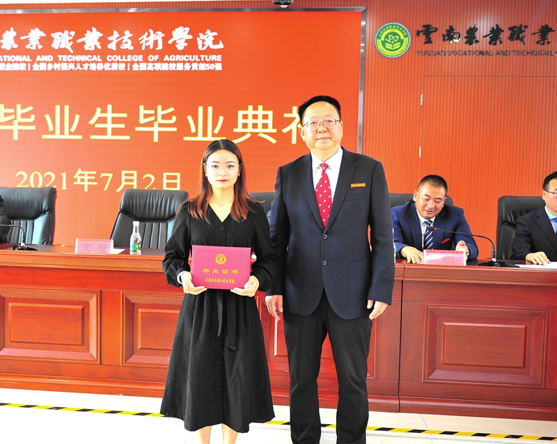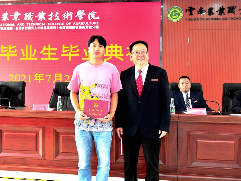 大会上,文俊院长为2021届毕业生代表颁发毕业证,并与毕业生代表合影留念。