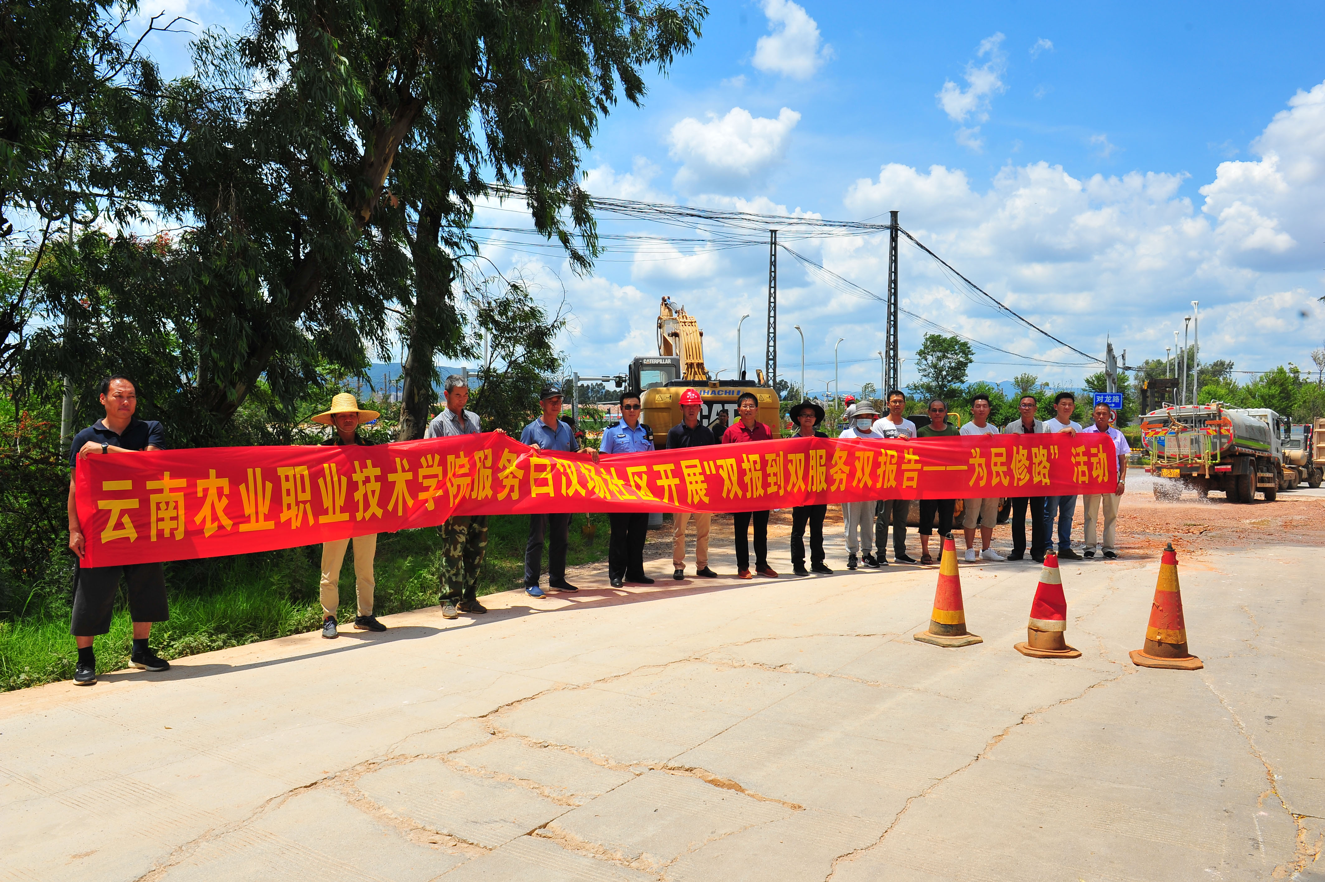 此次所修道路,是学院小哨校区所在的白汉场社区辖区内规化外乡村道路,是附近村民和周边单位出行的重要通道。该路段车流量大行人多,因长时碾压失修,导致路面坑洼不平,严重影响了周边民众的出行,并存在着较大的安全隐患。为有效解决当地群众和周边单位道路通行顺畅和正常出行,给其创造一个良好的交通秩序和道路环境,学院党委高度重视,2021年3月即安排后勤管理服务中心协商驻地交警等有关部门着手解决修路事项。我院1998级畜牧兽医33班校友、云南尊达建筑工程有限公司法人马良同志知晓此事后,主动与母校取得联系,积极表明愿意承担修路重任回报母校和社会的决心。学院结合“双报道双服务双报告”进展情况,以及马良同志即是学院毕业生又是学院党员的实际,经商议决定以“学校+企业”的形式服务白汉场社区,联合开展“双报道双服务双报告——为群众办实事”活动。由学院负责活动策划以及与白汉场社区等有关部门沟通协调,云南尊达建筑工程有限公司负责出资修路以及修路的具体工作。