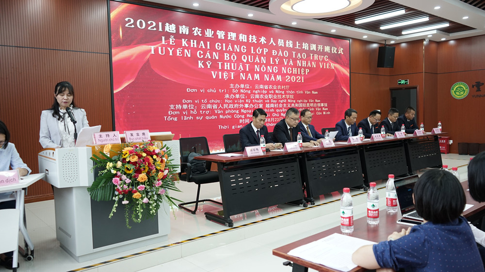 通知中心8月23日上午9点,2021越南农业管理和科技人员线上培训开班仪式在我院茭菱校区举行。云南省农业农村厅张穆一级巡视员、越南驻昆明总领事馆阮忠孝总领事、云南省人民政府外事办公室郝昆副主任、我院文俊院长、越南驻昆明总领事馆郑国毅领事、云南省人民政府外事办公室邻国处马作昕处长、我院苏华伟副院长、各单位相关人员及越南九省共185名学员参加了此次线上开班仪式。开班仪式由云南省农业农村厅对外交流合作处胡新梅副处长(主持工作)主持。