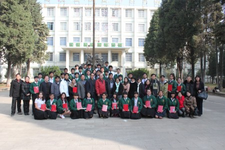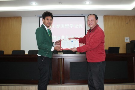 凌军处长汇报了2013年38名泰国留学生在我院学习、生活的情况,并表示全部留学生学习努力,成绩优秀,予以结业。泰国留学生代表黎丰轩同学用PPT发言,他介绍了38名留学生在学院两个校区经历的短暂、平凡而又紧张、活泼的学习和生活,汇报了游览考察大理丽江等地的情况,并向学院领导和老师表示最诚挚地感谢。之后,泰国留学生表演了小合唱云南民歌《月亮升起来》,展示了他们在校期间学习的才艺。学院领导和任课教师向他们颁发了在sunbet集团中国官网入口的结业证书。