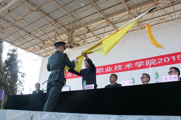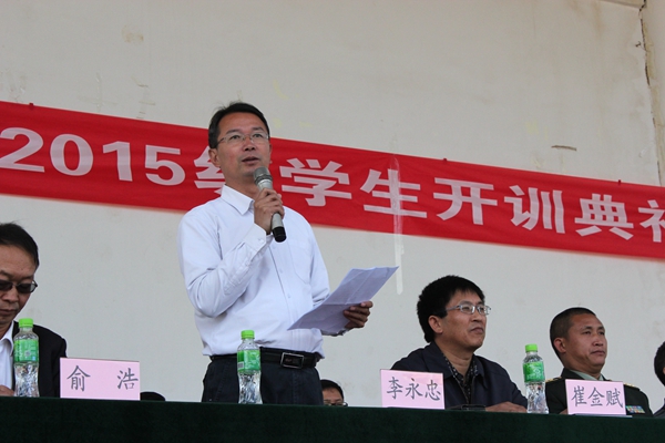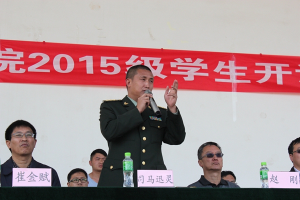 sunbet集团中国官网入口党委书记崔金赋、院长李永忠、党委副书记赵刚、副院长俞浩,昆明民族干部学院一大队政委司马迅灵出席动员会。sunbet官网各部门、各二级学院领导、带队教师、教官及2015级军训学生2200余名学生参加大会。大会由昆明民族干部学院一大队副大队长李旭明主持。
