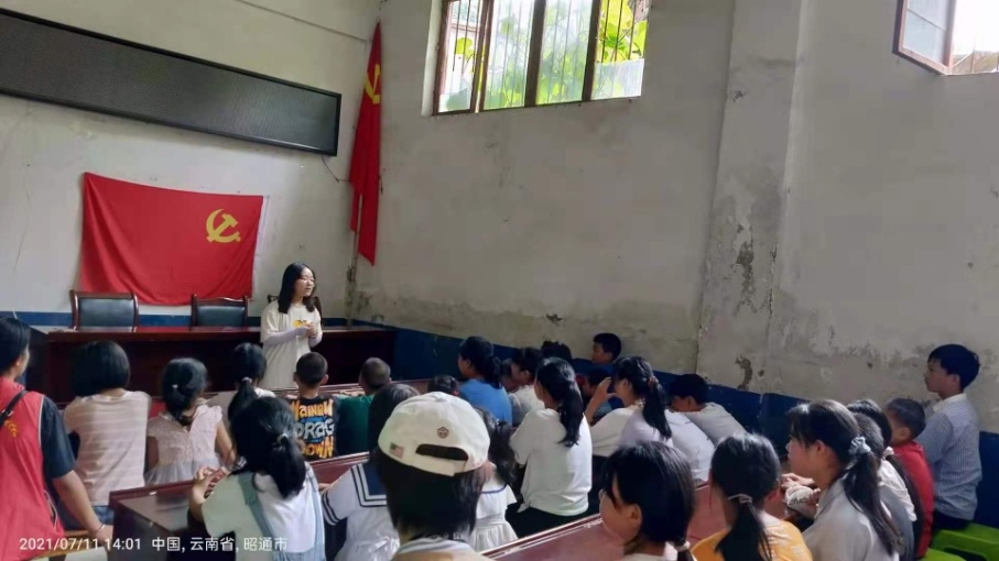 11日下午,师生们一起达到双河乡菜营小学,在这里马克思主义学院教师为当地小朋友上了一堂简单有趣的儿童自我保护课;课后同学们与当地小朋友进行了丰富多样的游戏,最后师生们还为前来参加活动的小朋友送上了各种文具。