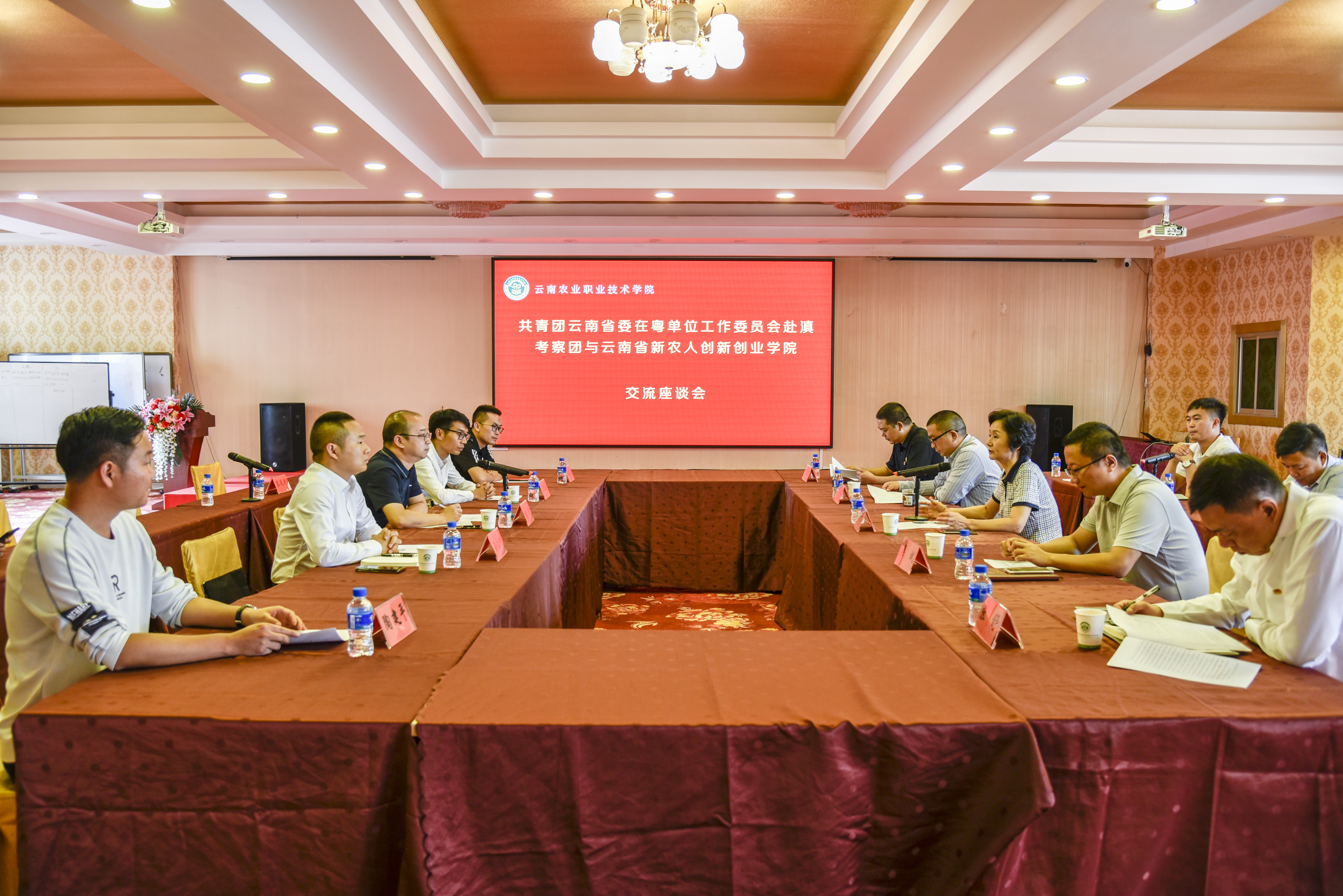 座谈会上,杨波副院长代表学院对考察团一行的到来表示热烈地欢迎,随后对学院的基本情况以及学院新农人创新创业学院在围绕立德树人、创新创业发展,资源共享等方面进行介绍。并就“云品出滇入粤”和支持云岭广大青年返乡就业创业等工作和 与会领导交换了意见。