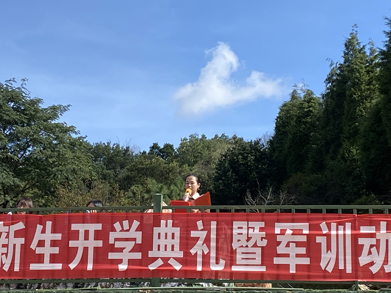 教师代表韦堂燕老师表示,希望同学们在15天的军训中一定要尊重教官,坚决服从指挥,刻苦训练,以饱满的热情全身心投入到军训中。教官代表代金明希望同学们在今后的军训生活中振奋精神、认真参训、听从指挥、严守纪律。2021级软件一班学生代表吴二代表参训学员庄严承诺:必将严格要求自己,严格遵守军训纪律和作息时间,不随便脱离集体;文明礼貌,尊重师长;团结友爱,互帮互助。