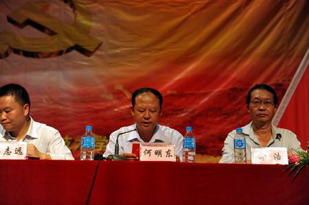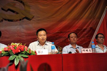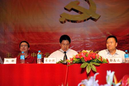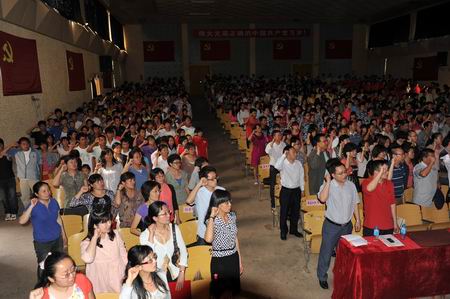 全体起立,奏唱中华人民共和国国歌,大会在庄严的国歌声中拉开序幕。会上,党委书记崔金赋代表学院党委,向全院共产党员致以节日的问候!向受到表彰的优秀共产党员,以及新入党的预备党员表示热烈的祝贺!向辛勤工作在教学、管理等岗位,为学院改革发展作出了自己贡献的所有党员同志,表示由衷的敬意!崔书记回顾了中国共产党90年来的光辉历程,回顾学院107年发展历史中在云南重大历史事件中作出的贡献,以及学院光荣的革命传统。分析了学院改革发展面临的新形势、新任务,并提出了三点要求:第一,全体共产党员要以实际行动向杨善洲同志学习,坚定信仰,不可动摇,确保政治方向正确;摆正位置,平和对事,确保群众基础扎实;生命有限、学海无涯,确保前进动力充足;立足本职,做精做细,确保目标任务完成;加强党性,树立形象,确保执政风格清廉。第二,全体师生员工要进一步增强责任感和紧迫感。每一位党员、每一位教职员工要认清形势、立足本职、做精做细,为学院的发展贡献力量。第三,全体新党员以及老党员要牢记入党誓词,时刻用誓言来规范自己的言行,严格按照党章的要求,发挥党员的先锋模范带头作用,奉献社会、服务人民。