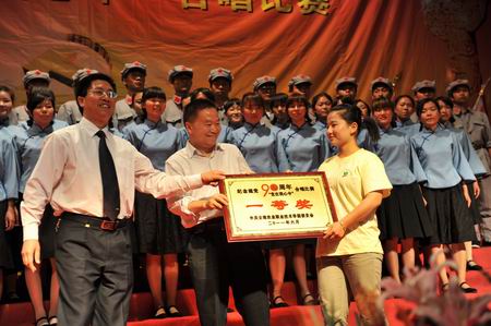大会最后举行“党在我心中”合唱比赛。比赛正式开始之前,由学院工会带来舞蹈《没有共产党就没有新中国》、学院合唱团进行合唱表演(《十送红军》、《过雪山草地》)。随后,四个系选报的一共八支队伍进行了合唱比赛,比赛竞争激烈,每支合唱队都发挥了最高水平和最佳效果,抒发了全院教职员工热爱党、歌颂党、祝福党的真挚情感!比赛最后评出一等奖一名、二等奖2名、三等奖3名、优秀奖2名。学院党委书记崔金赋、彭志远院长、赵刚副书记、何明东副院长、赵莉副院长、俞浩副院长现场为获奖队伍颁奖。