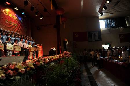2011年6月30日下午,由中共sunbet集团中国官网入口委员会主办,党委办公室、组织部、宣传部、团委承办的庆祝中国共产党成立90周年纪念大会暨“党在我心中”合唱比赛在学院小哨校区礼堂举行。sunbet集团中国官网入口党委书记崔金赋、院长彭志远、党委副书记赵刚、何明东副院长、赵莉副院长、俞浩副院长出席会议。学院副科以上领导干部,在职教职工党员,在校学生党员及小哨三个系入党积极分子,离退休党支部书记近一千余人参加了会议。会议由彭志远院长主持。