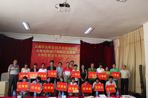 2012年5月18日下午2:00,学院招生就业处在小哨校区多媒体教室三成功举办了主题为“我规划我成功,我创业我快乐”的第四届大学生创业计划设计大赛暨大学生职业生涯规划大赛。招生就业处处长潘彦维、学生工作处处长周诚、畜牧兽医系主任赵跃、园艺与园林工程系主任唐世凯、生物工程系党总支书记许邦丽、管理与信息工程系副主任徐开宏,以及特邀昆明青年企业家协会副会长张陟,云南省教育厅、省劳动就业局、省大学生创业大赛指定创业导师、大卫咨询机构首席经济学家胡专担任本次大赛的评委。