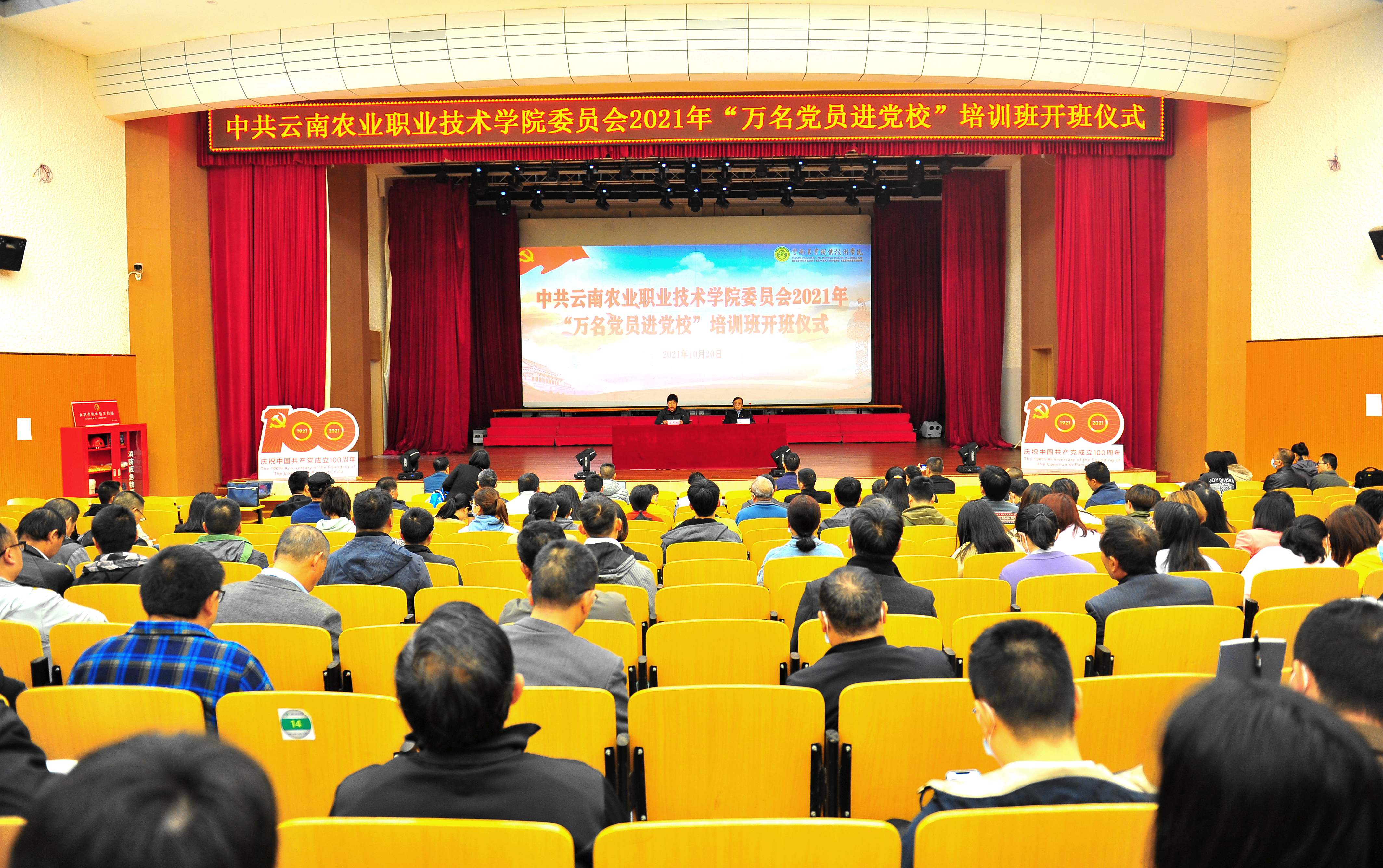1020—22学院党委党校在小哨校区蚕桑礼堂举办了为期三天的万名党员进党校培训班,全体在职党员参加培训。邀请省委教育工委宣讲团成员、省内知名教授、专家学者、技术顾问等讲授专题讲座,并采取自学研习与课堂学习相结合的方式进行。