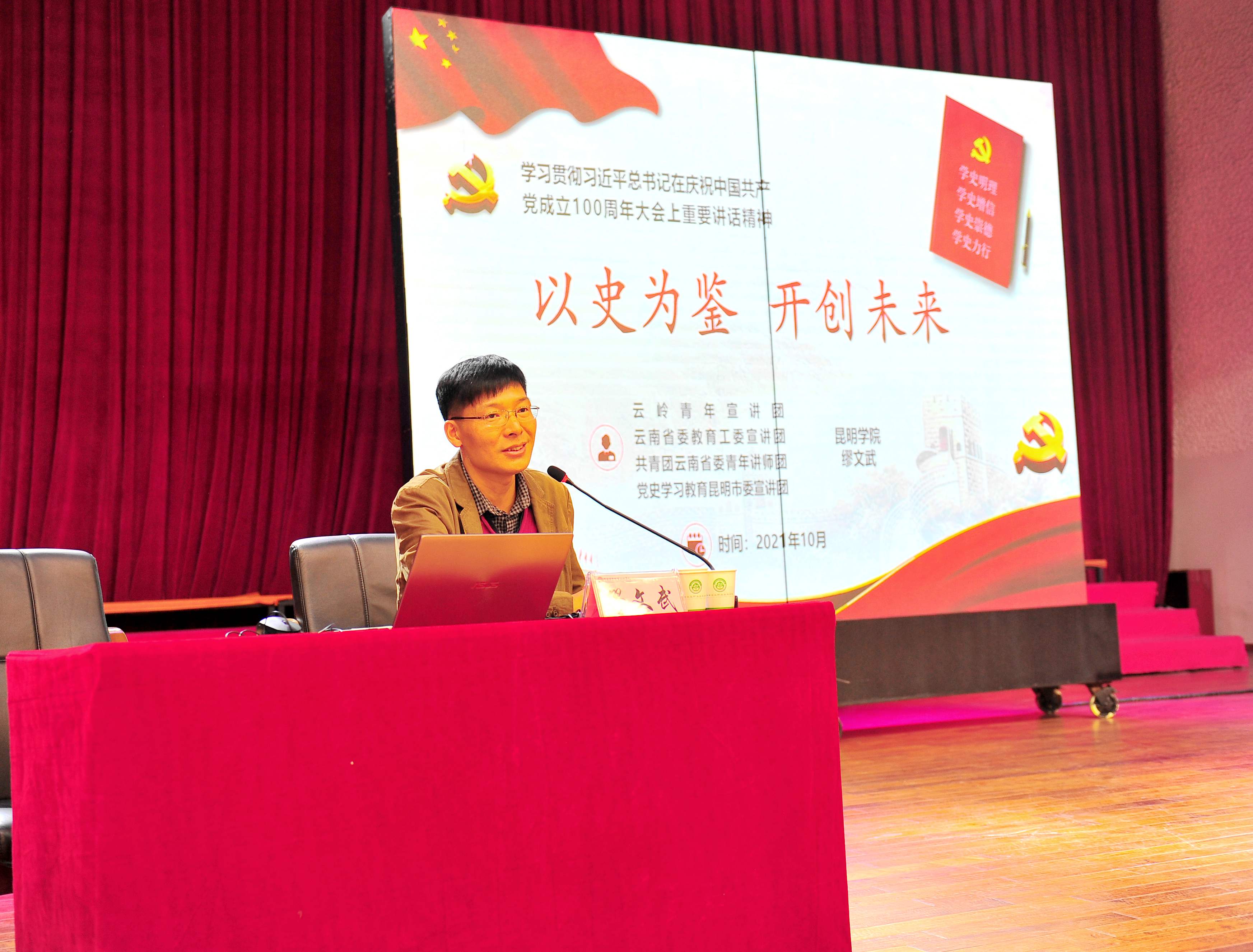 省委教育工委宣讲团成员、昆明学院马克思主义学院繆文武副教授作报告