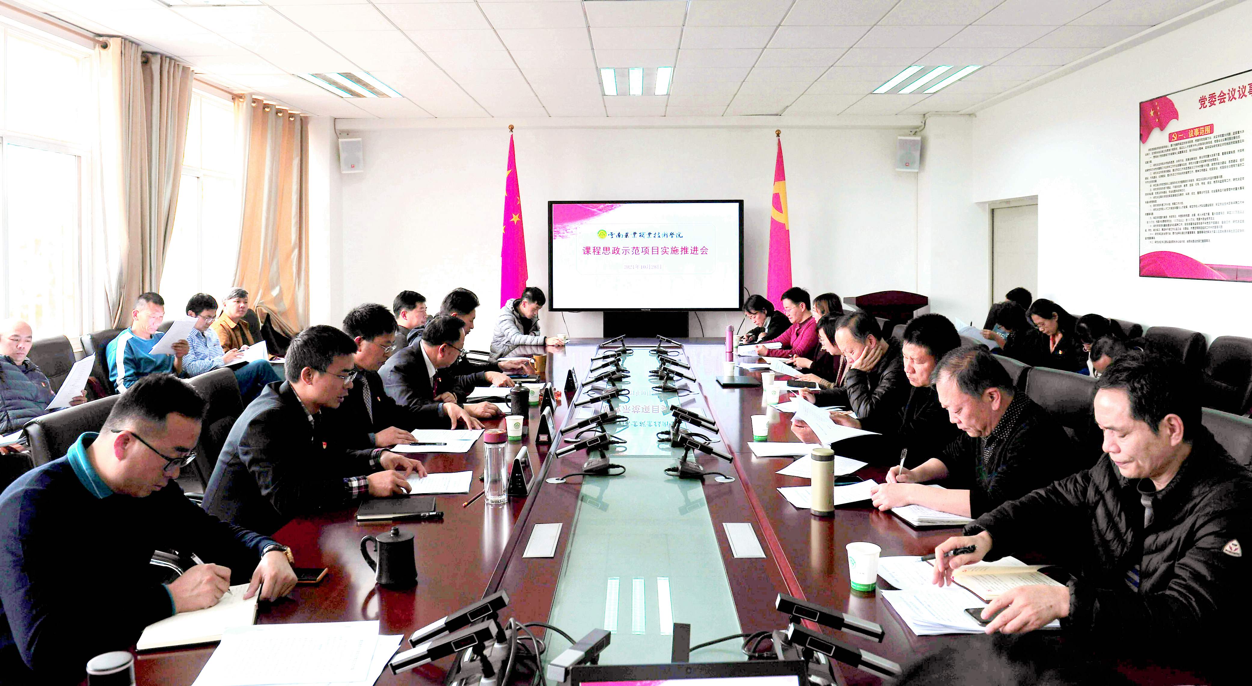 1028日,我院在小哨综合楼421会议室召开课程思政示范项目实施推进会。党委书记崔金赋、院长文俊、党委副书记伍学龙、副院长田应华出席会议。会议由党委副书记伍学龙主持。学院办公室、组织部、宣传部、学生工作部、教务处、教师发展中心、教学质量监控办公室、实践教学中心、高等职业教育研究所、团委等部门及各二级学院负责人等30余人参加了此次会议。