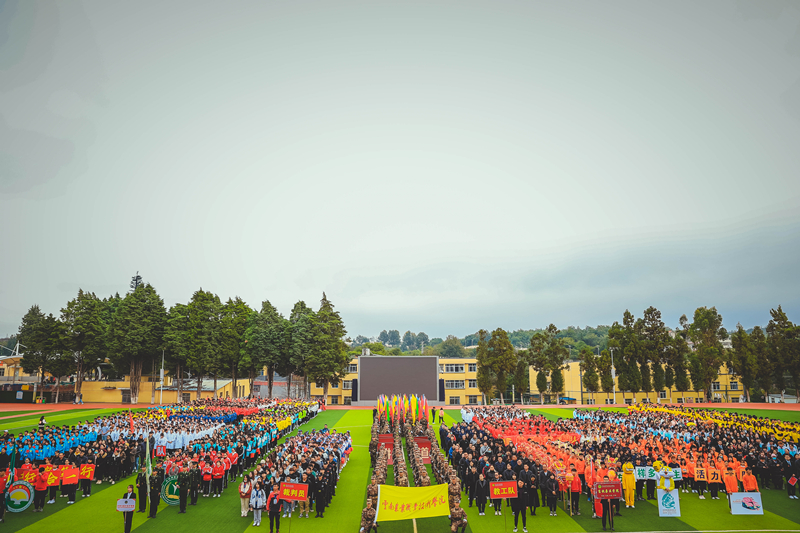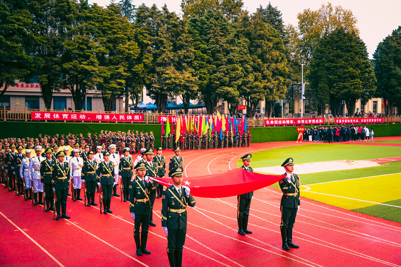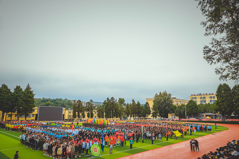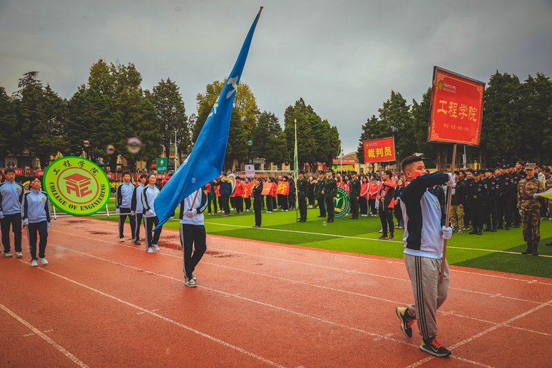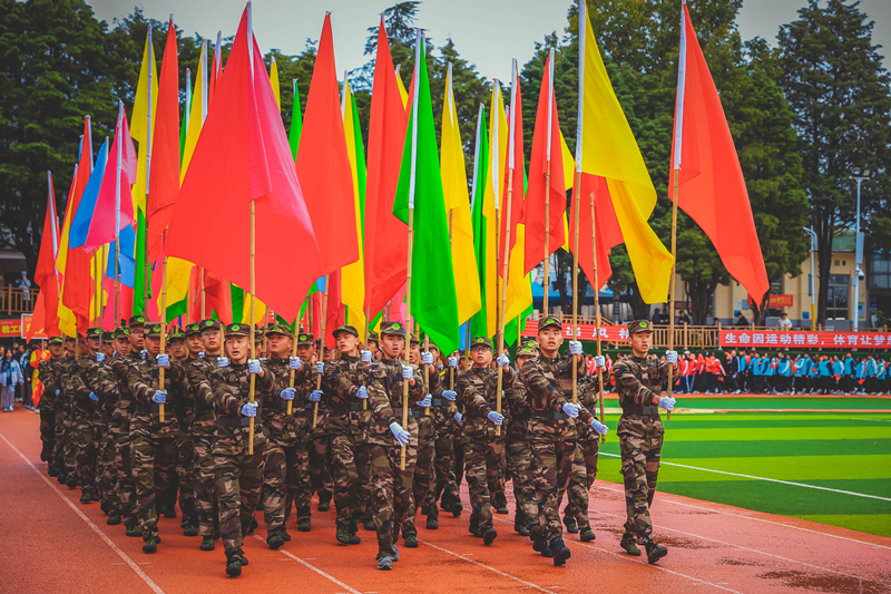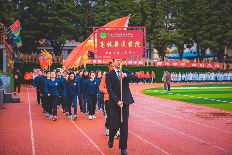 初冬的小哨天高气爽,伴着一丝寒意,但青春热情却丝毫不减,伴随着激昂的运动员进行曲,国旗、校旗仪仗队、校训方队、彩旗方队、教工方队、裁判员代表队、各二级学院运动员代表队等各成方阵,喊着嘹亮的口号,迈着整齐的步伐,动作整齐,精神抖擞,有序进入会场。精彩纷呈的入场式隆重而欢快,充分展现了农职学子朝气蓬勃、激扬向上的精神面貌,赢得了全场观众阵阵热烈喝彩。