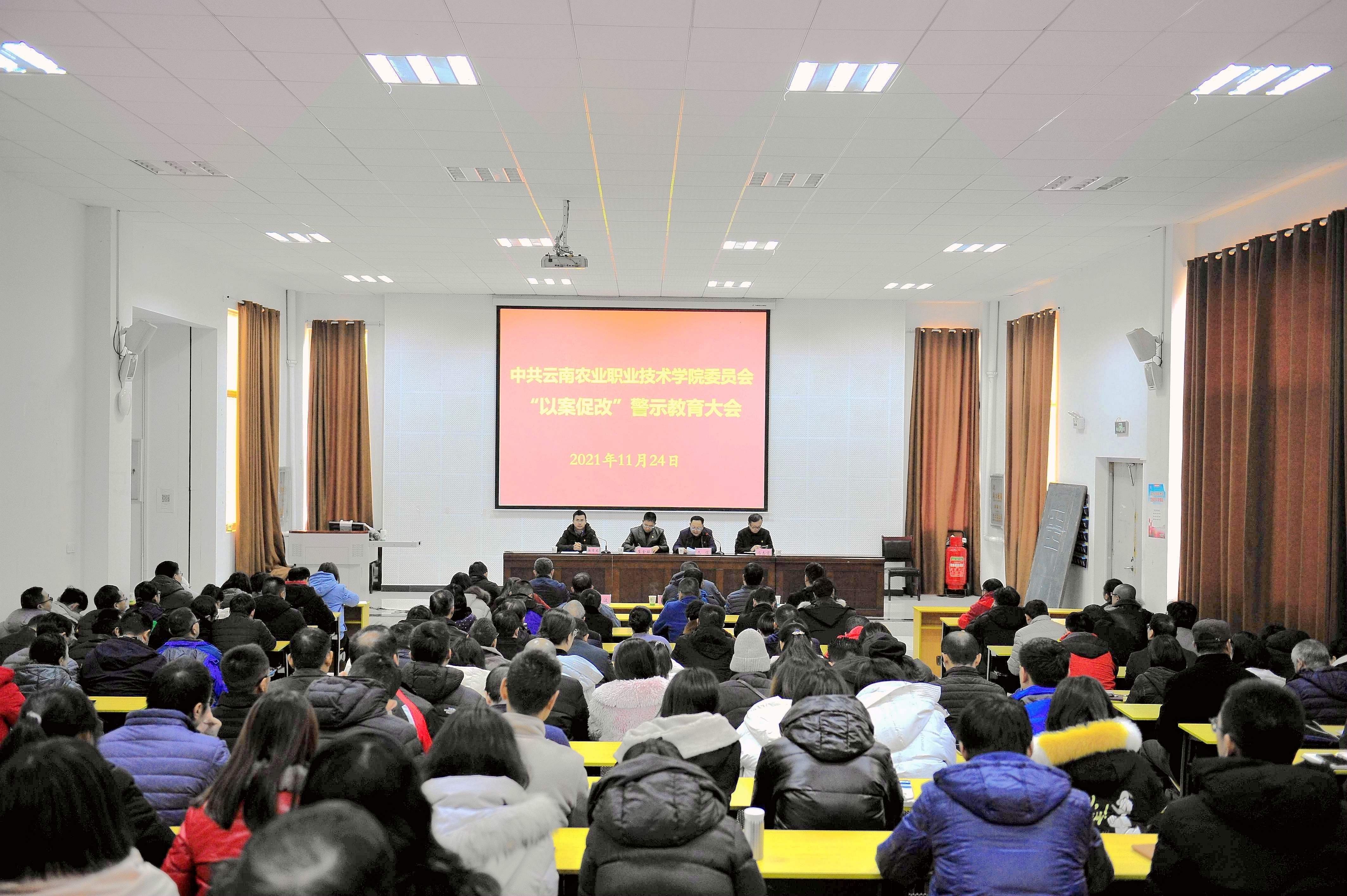 通知中心为认真落实省委第十四轮巡视第四巡视组在巡视“回头看”整改工作要求,做好“以案促改”警示教育,根据学院党委统一安排部署,学院院于11月24日下午在小哨校区综合楼阶梯教室召开“以案促改”警示教育大会。党委副书记伍学龙同志宣布有关决定、传达有关文件精神,党委书记崔金赋同志、纪委书记冯志宏同志分别讲话,学院党政领导,全体副科级以上领导干部,各党总支、支部书记,纪检委员共200余人参加了会议。会议由院长文俊同志主持。