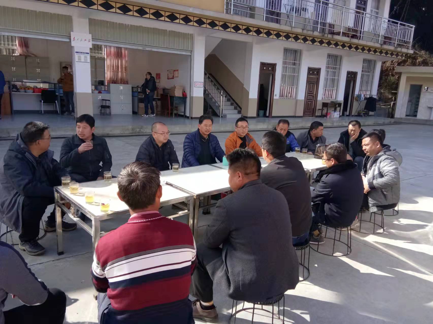 12月19日中午,杨波副院长一行到大兴乡龚家寨村与耿马县大兴乡、龚家寨村委会、大户肯村委会干部和驻村工作队进行座谈交流,了解帮扶工作推进情况。座谈会后,杨波副院长一行现场查看学院支持的龚家寨村古茶树保护项目实施情况。