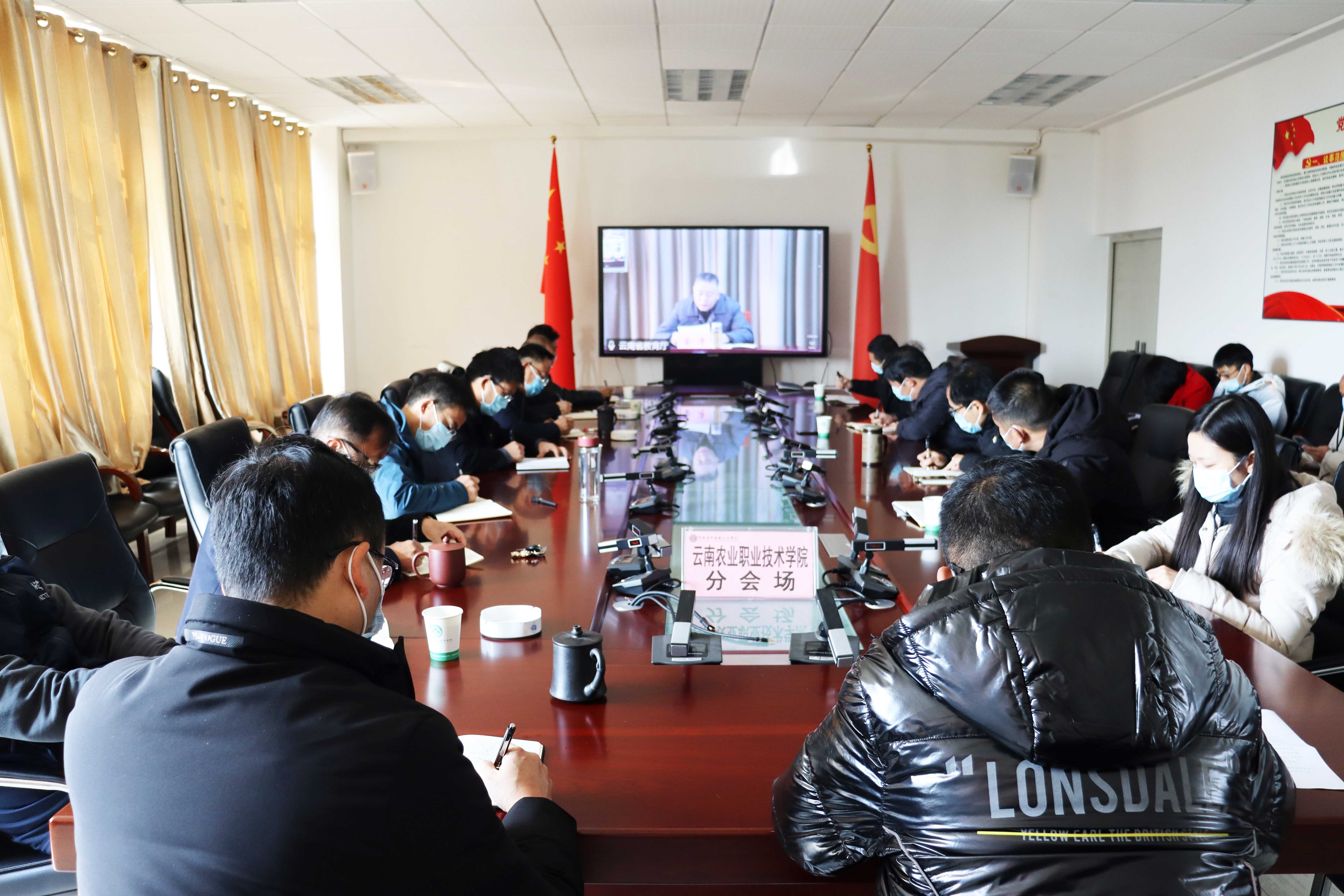通知中心12月28日上午,省委教育工委、省教育厅召开全省教育系统疫情防控工作视频会议,会议由省教育厅副厅长赵德荣主持。学院在小哨校区综合楼4楼会议室设置分会场,学院党政领导、各部门负责人参加会议。