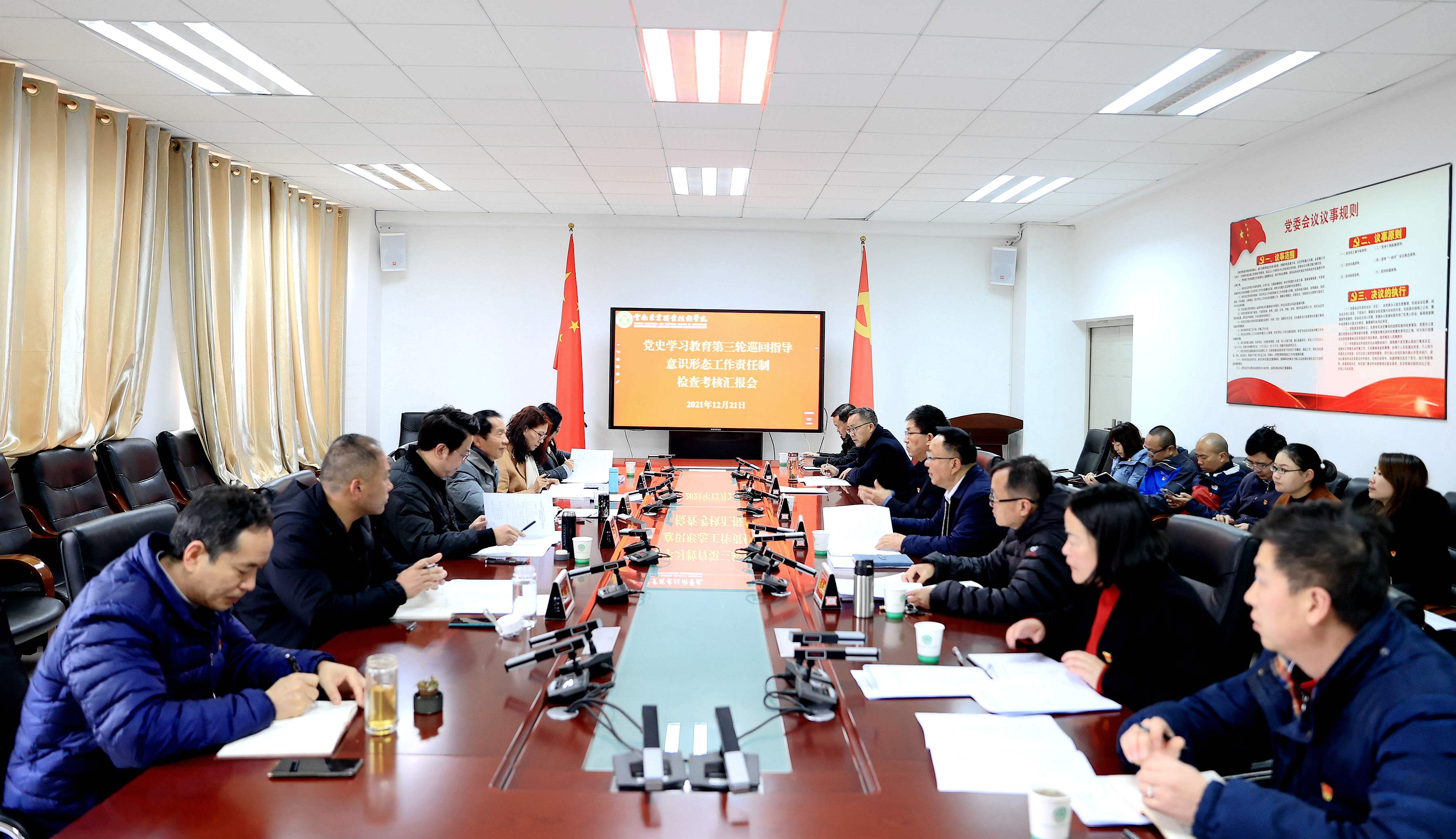 会上,党委书记崔金赋汇报了学院党史学习教育第二轮巡回指导以来,8个方面的重点工作开展情况;党委副书记伍学龙汇报了学院2021年度落实意识形态工作责任制情况。
